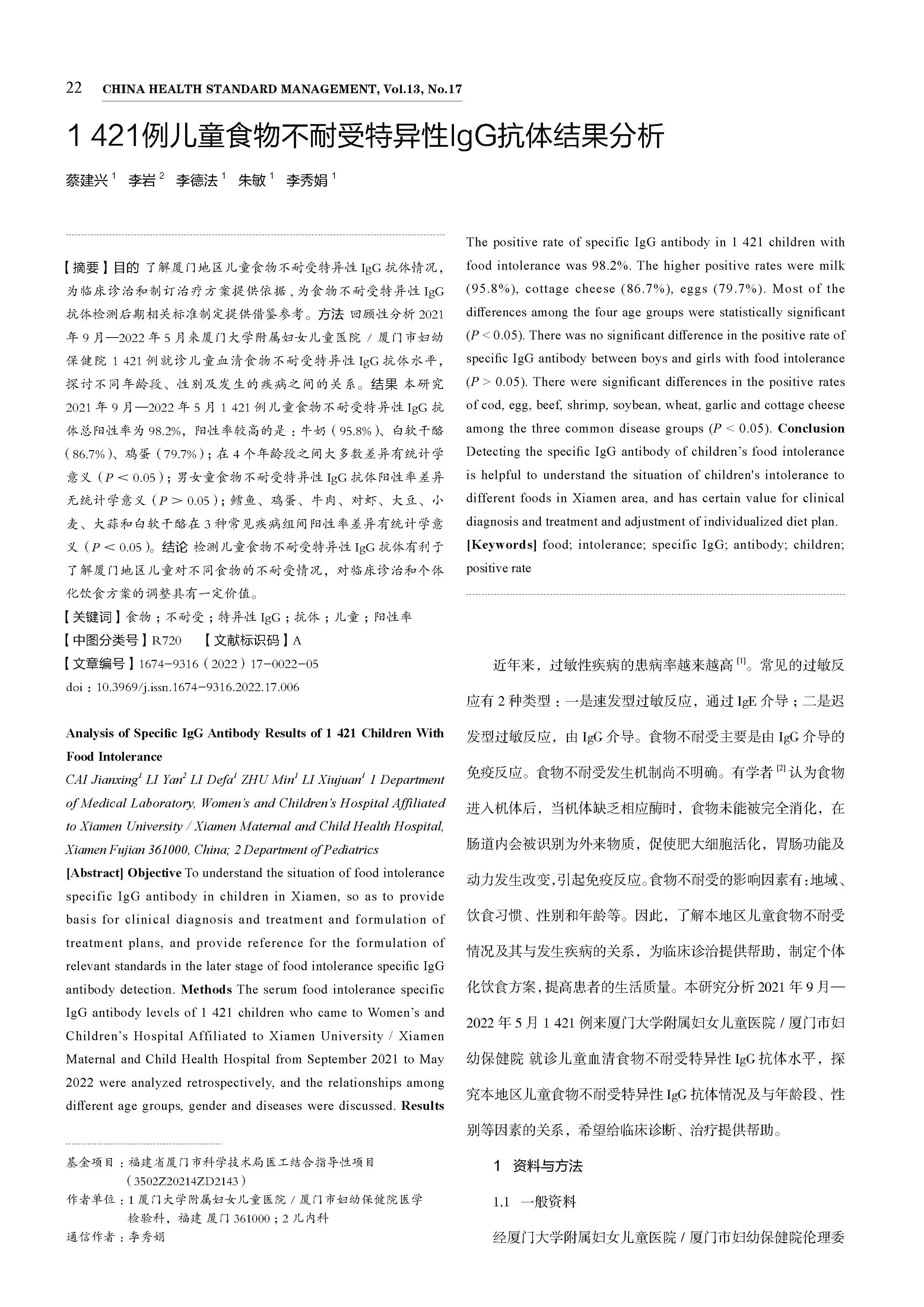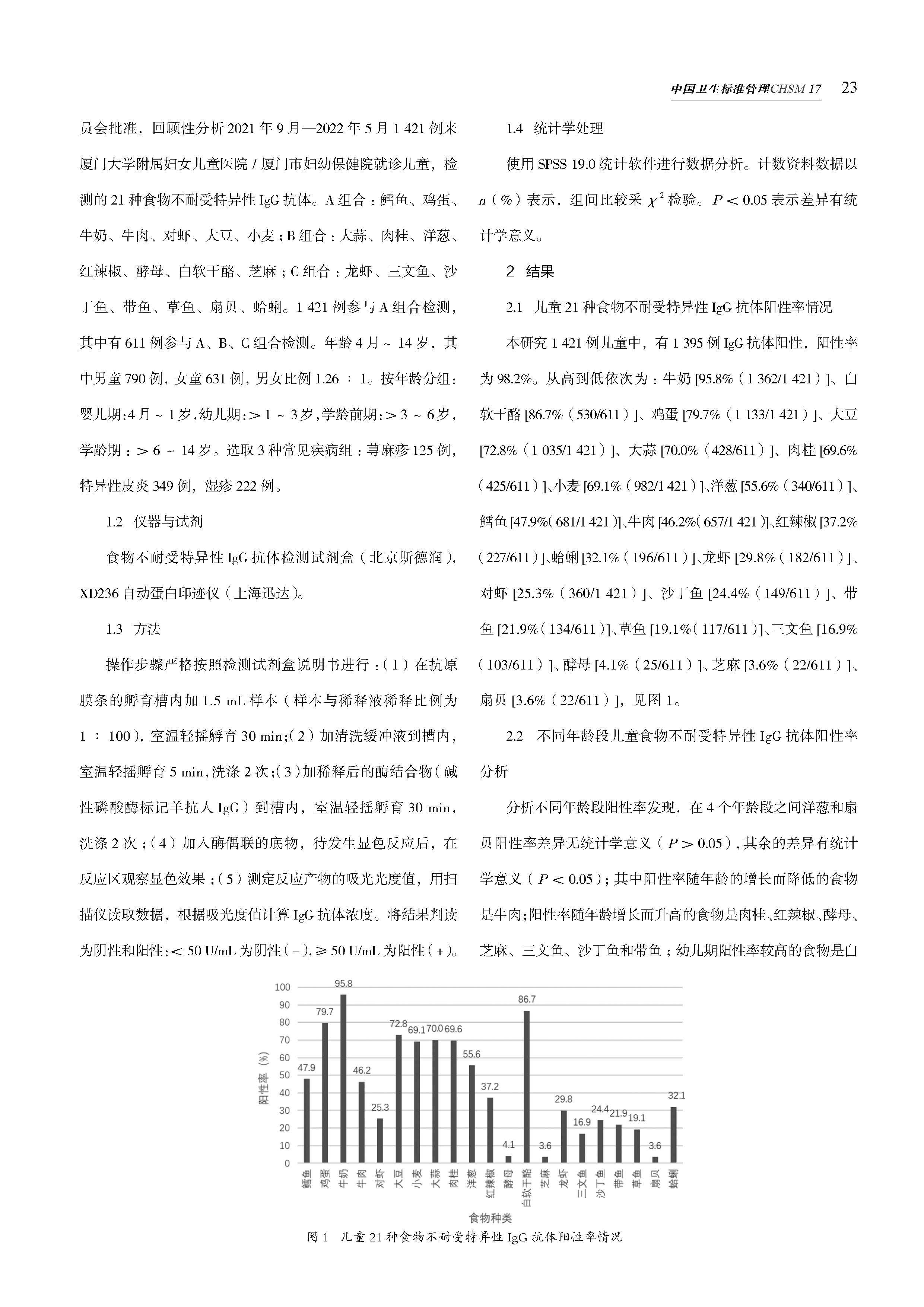 1421例儿童食物不耐受特异性IgG抗体结果分析