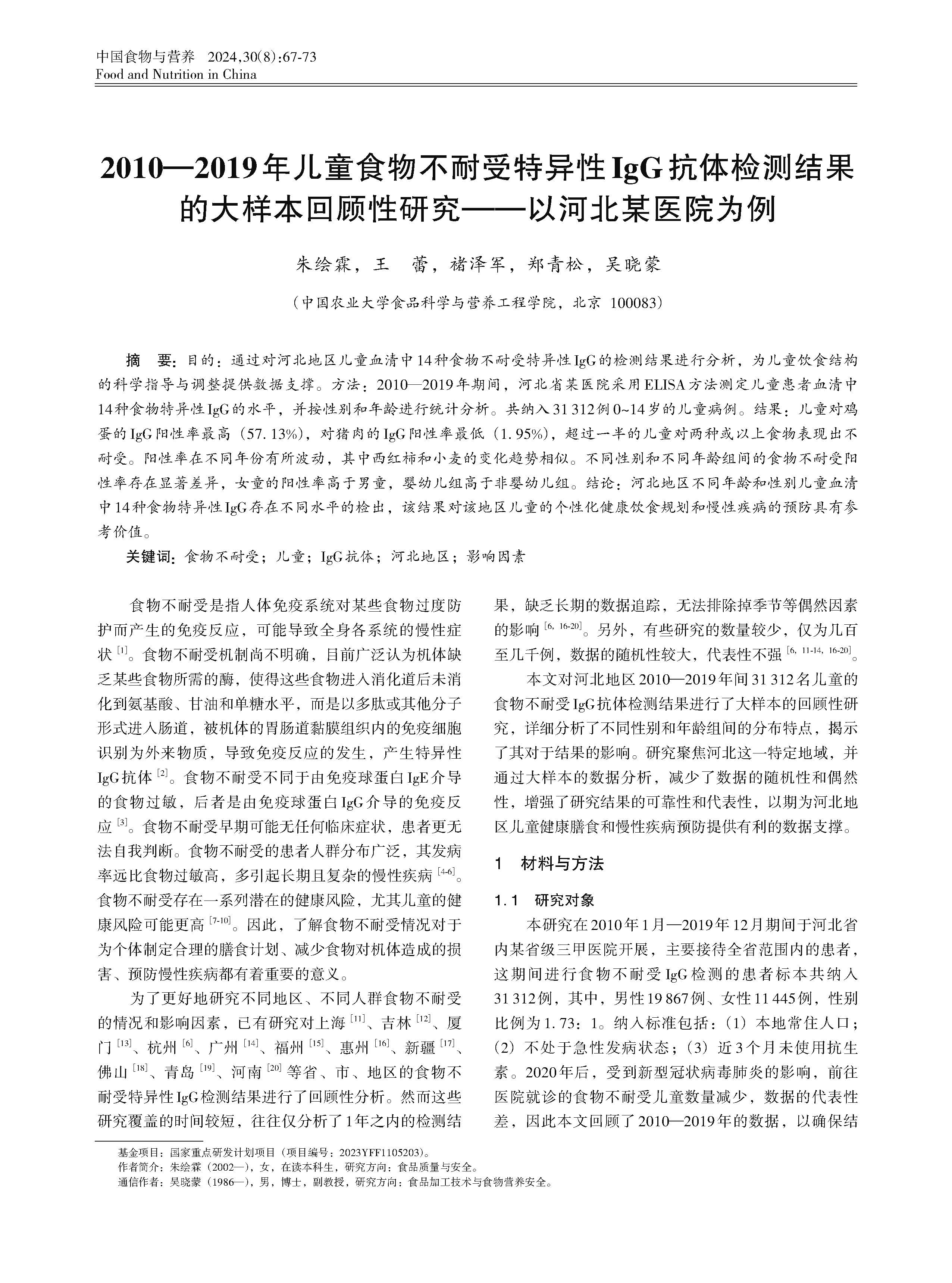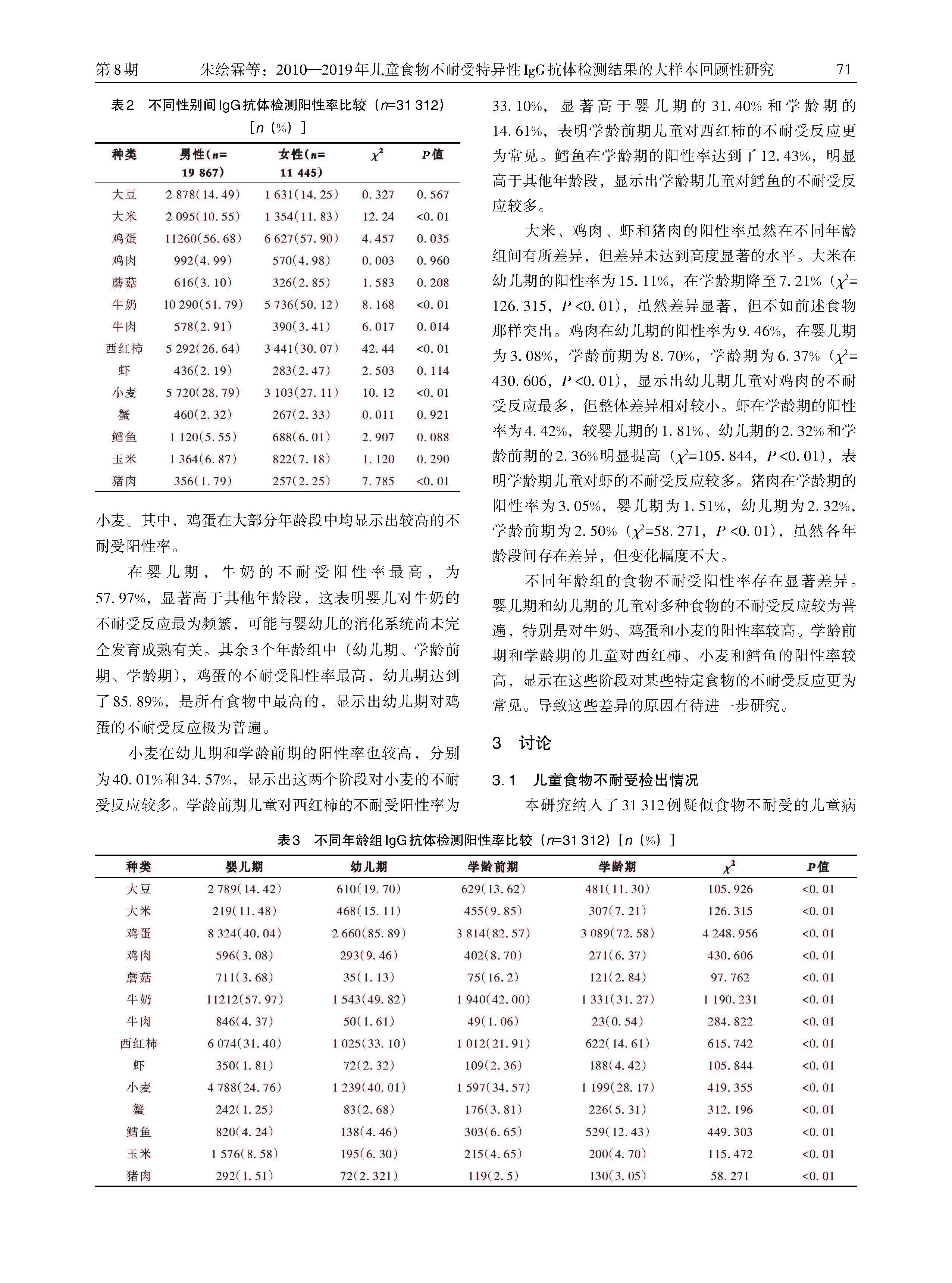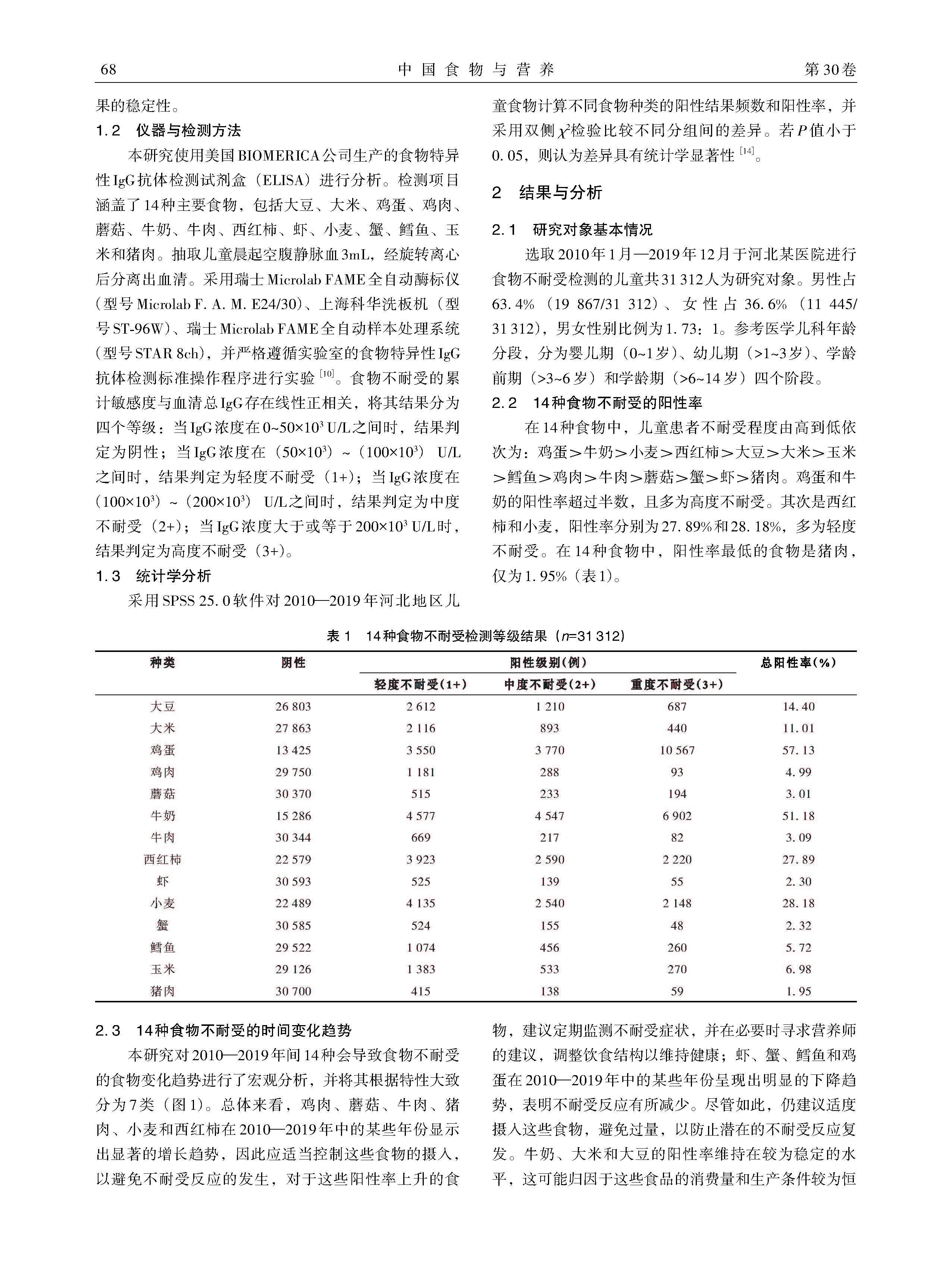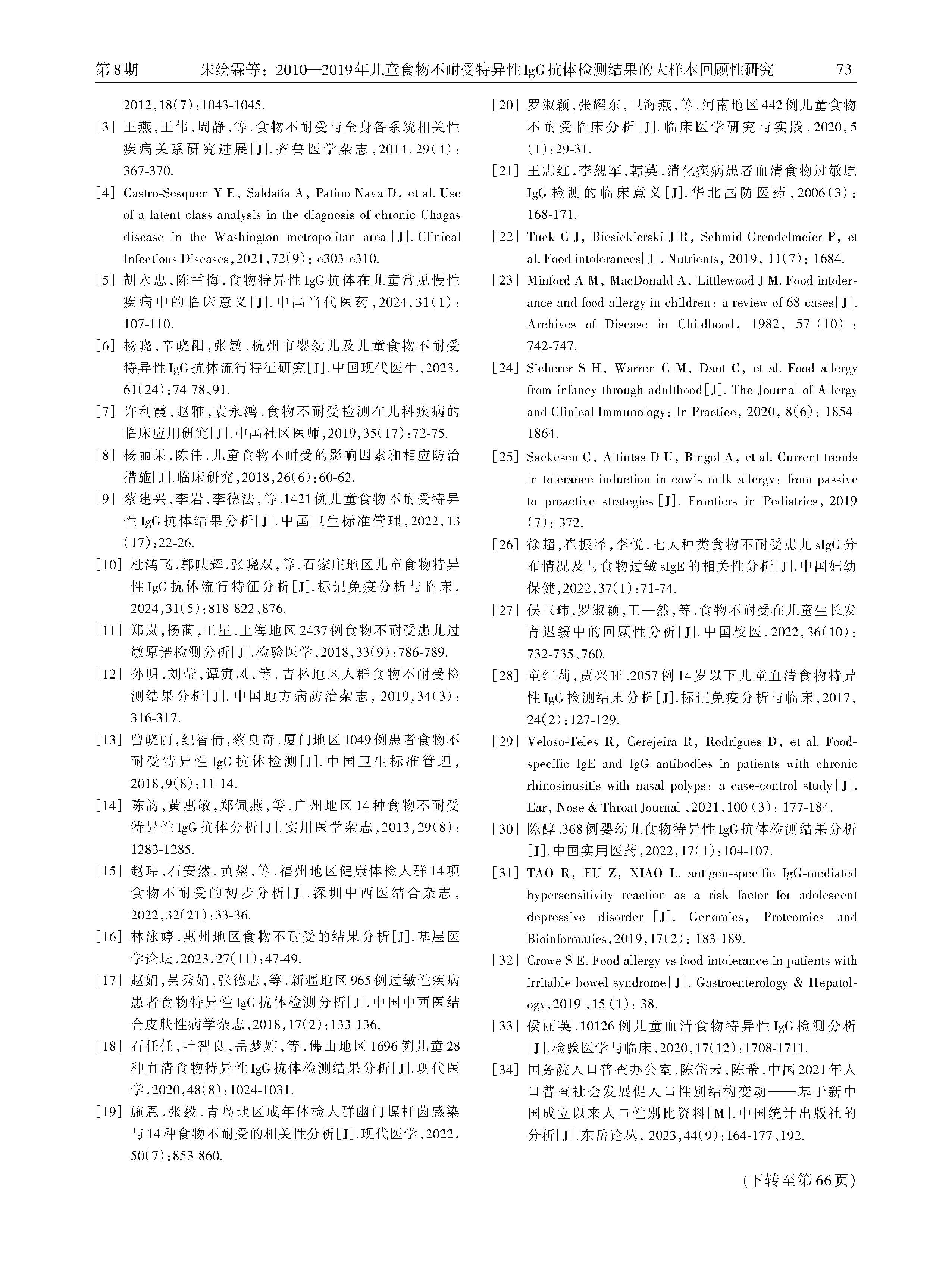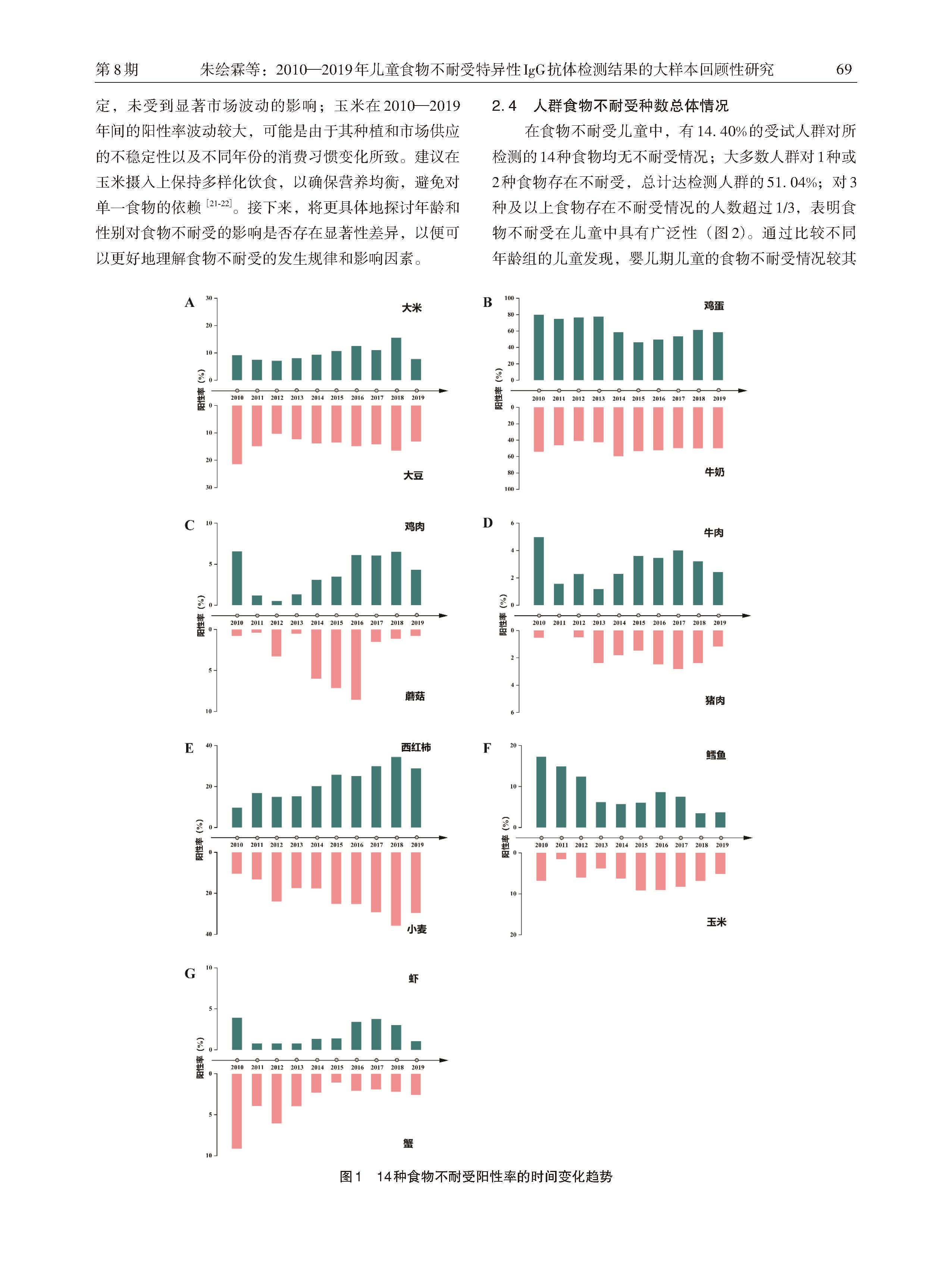 2010—2019年儿童食物不耐受特异性IgG抗体检测结果的大样本回顾性研究