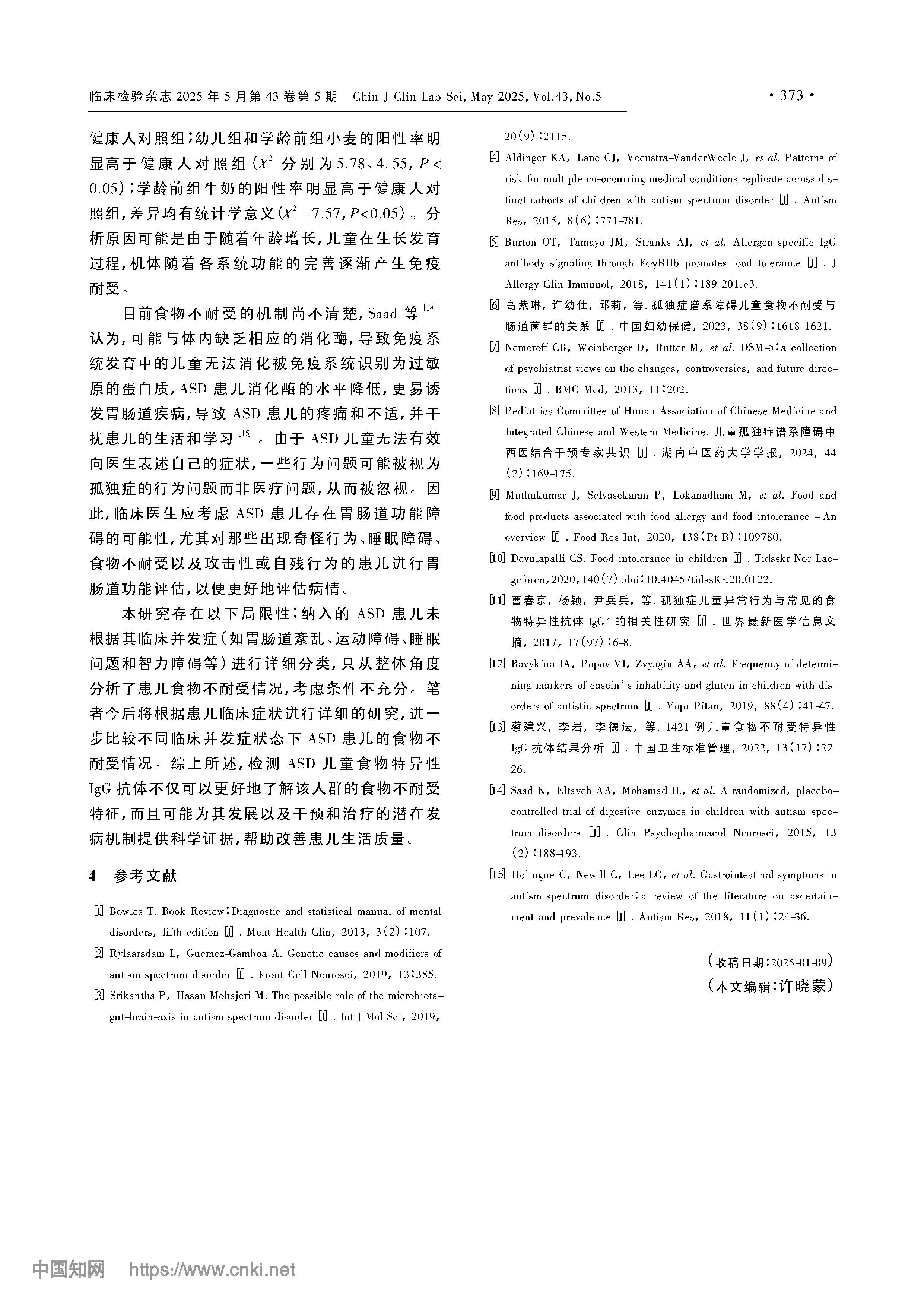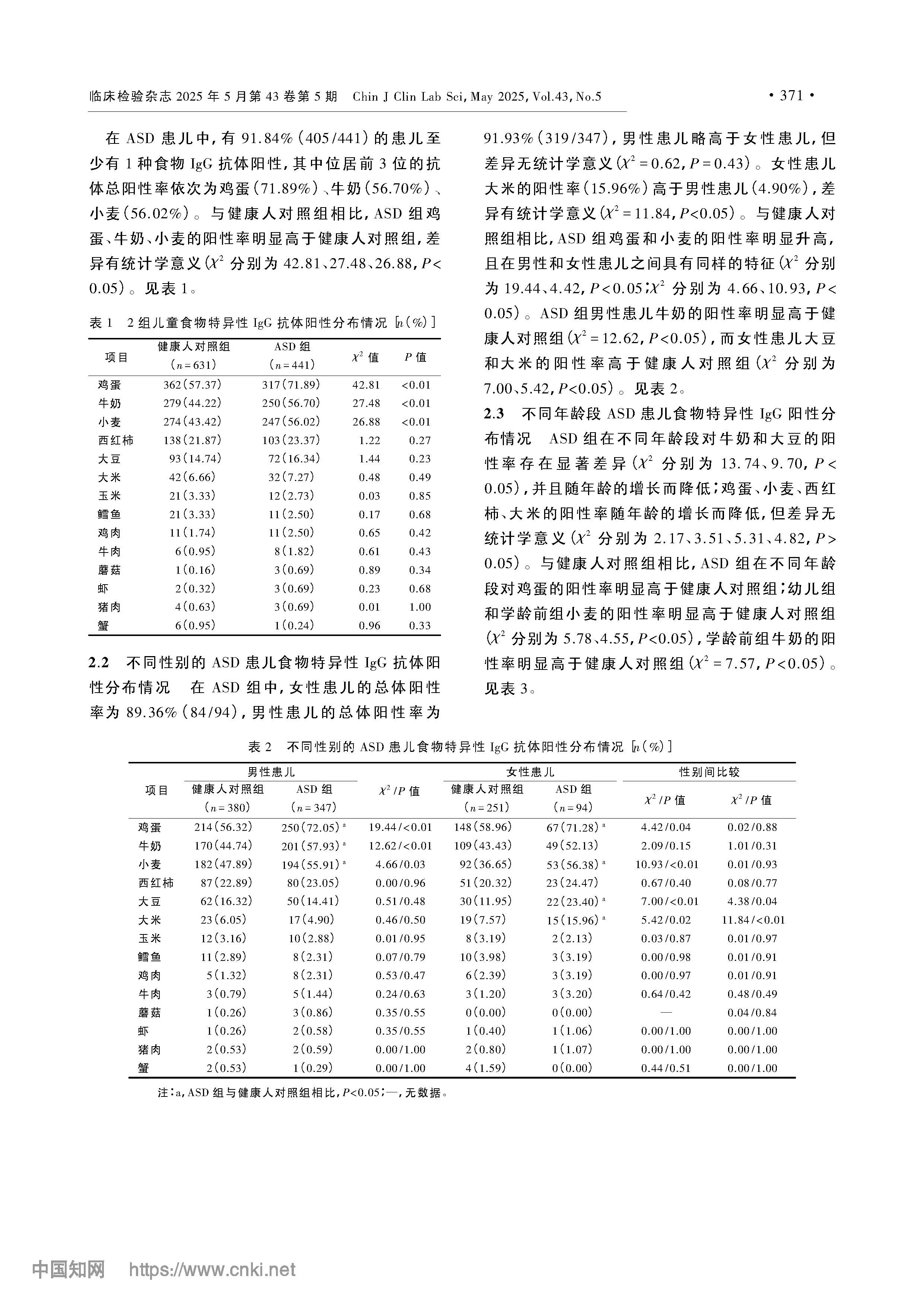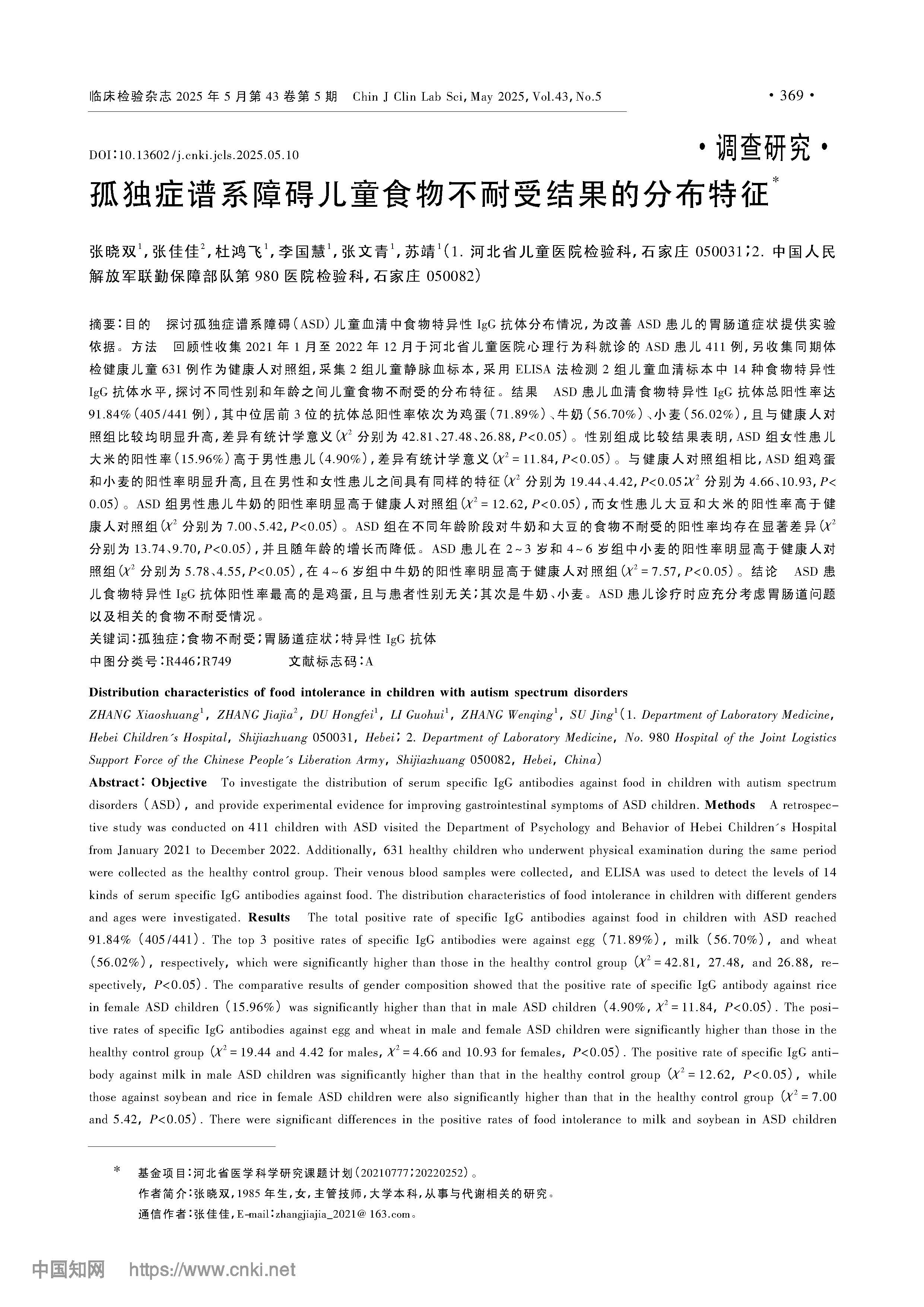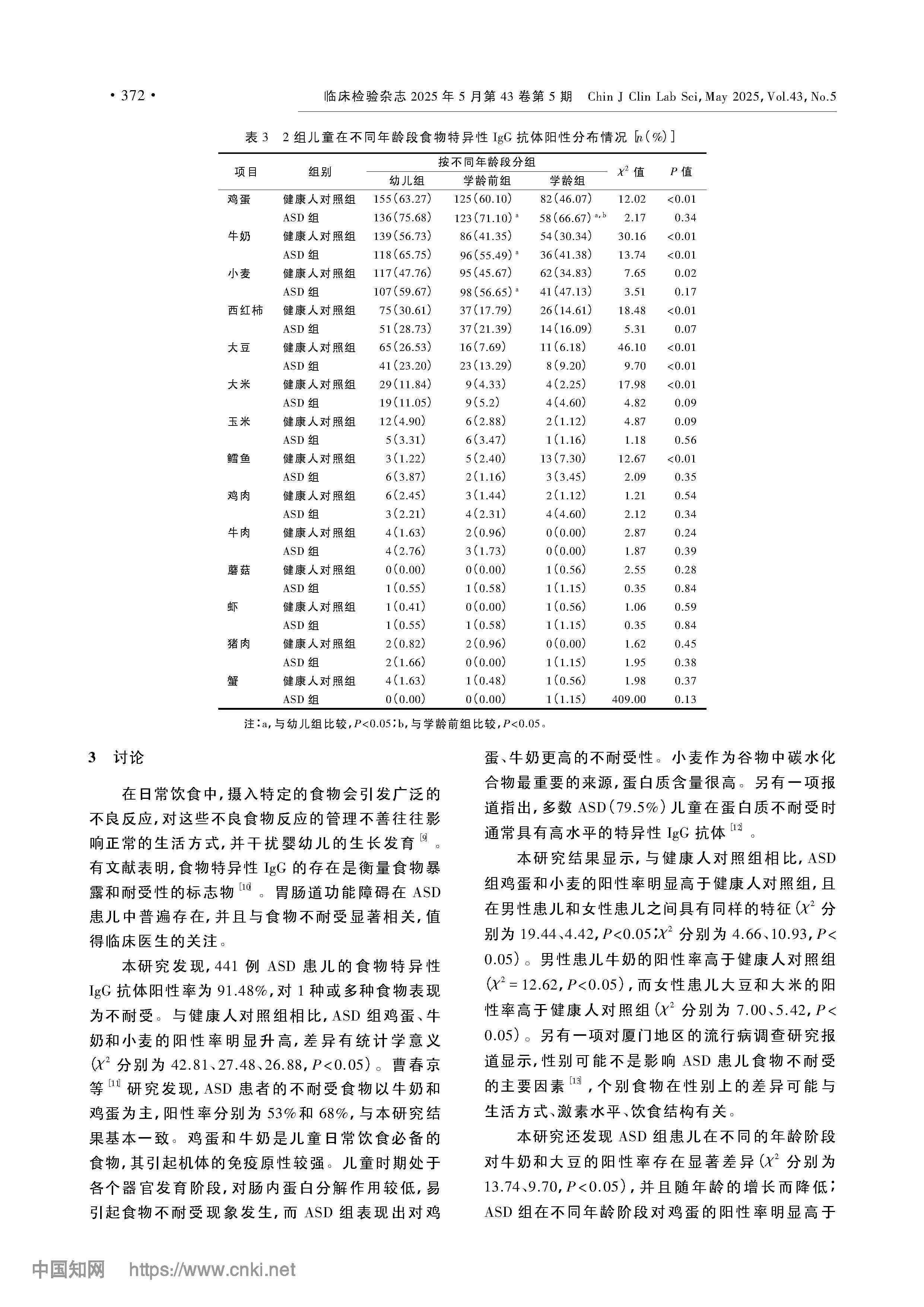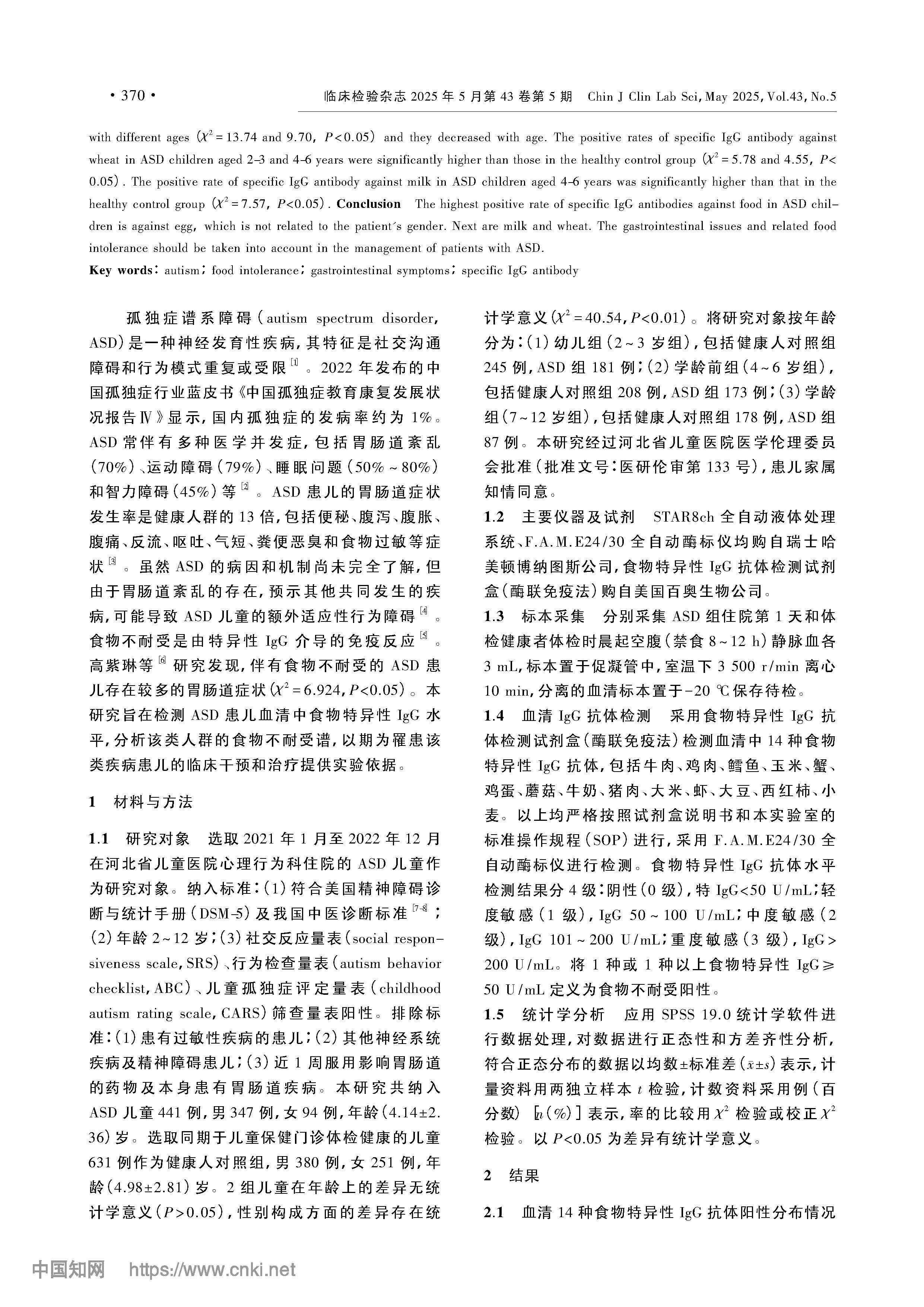 孤独症谱系障碍儿童食物不耐受结果的分布特征